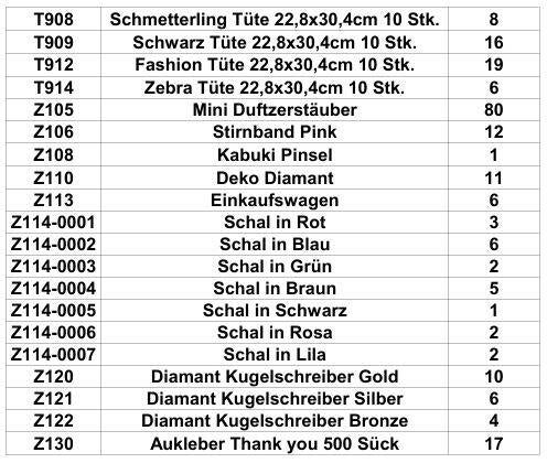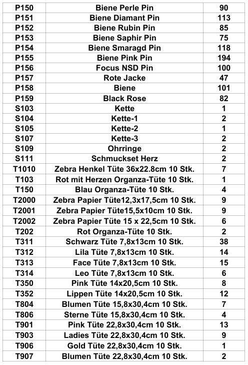 Restbestandsliste: